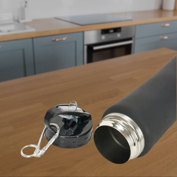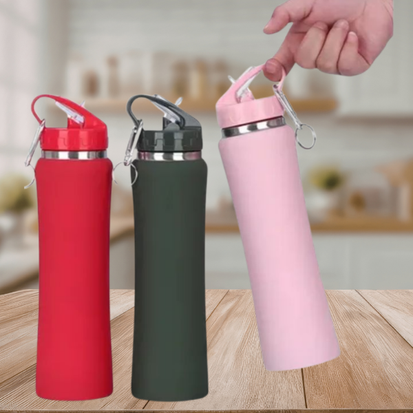 La botella de acero inoxidable de 500 ml es ideal para llevar agua, jugos o bebidas a la oficina, gimnasio, escuela o viajes. Su diseño resistente ayuda a mantener la bebida a buena temperatura por más tiempo.