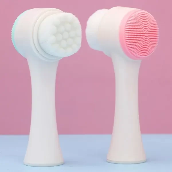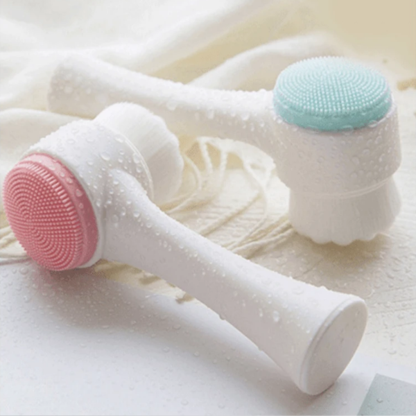 Cepillo exfoliante facial doble ideal para limpiar y exfoliar la piel de forma suave pero efectiva. Su diseño tiene dos cabezales, uno con cerdas para una limpieza profunda y otro de silicona suave para exfoliar y masajear el rostro.
