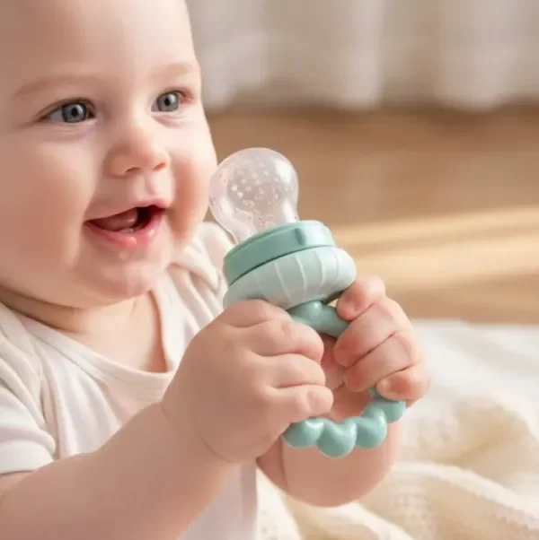 Permite colocar frutas, verduras o alimentos blandos dentro del recipiente de silicona, evitando riesgos de atragantamiento mientras el bebé explora nuevos sabores.