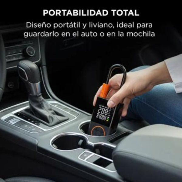 Gracias a su batería recargable, permite utilizarlo en cualquier lugar sin necesidad de conexión directa a corriente. Su diseño compacto facilita transportarlo en el auto o llevarlo en viajes y emergencias.