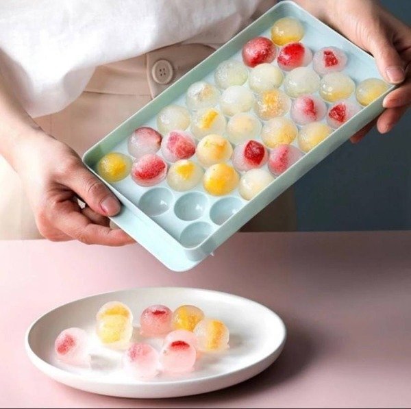 La cubetera de esferas te permite hacer hielos redondos de forma fácil y práctica. Su diseño de plástico resistente forma bolas de hielo perfectas, ideales para enfriar bebidas sin que se derritan tan rápido.
