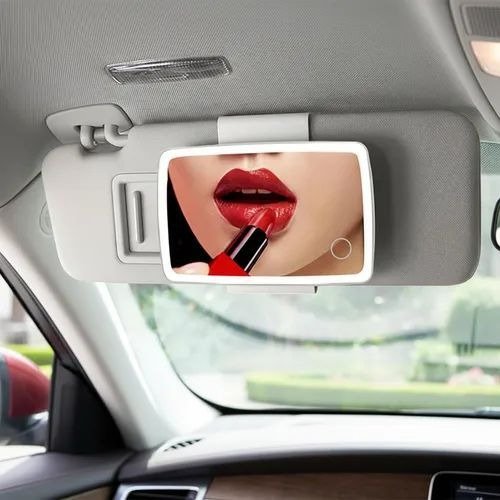 El espejo LED para auto se coloca fácilmente en el parasol y cuenta con luces LED que brindan una iluminación clara y uniforme, ideal para maquillarte, retocarte o acomodarte antes de bajar del auto.
