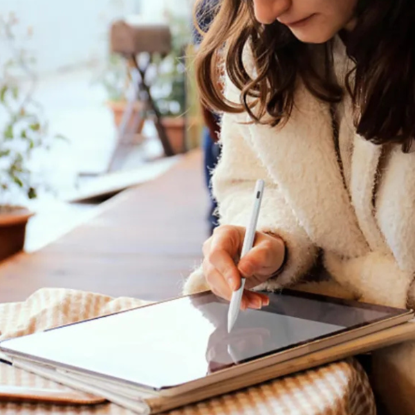 Lápiz óptico capacitivo recargable ideal para escribir, dibujar o tomar notas en tablets y celulares.