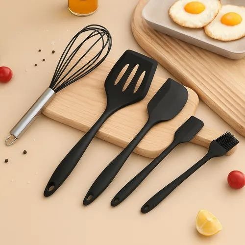 Práctico set ideal para quienes disfrutan cocinar y preparar cosas ricas en casa. Incluye 5 utensilios de silicona resistentes al calor, perfectos para repostería y cocina diaria. Son flexibles, fáciles de limpiar y no dañan recipientes antiadherentes.