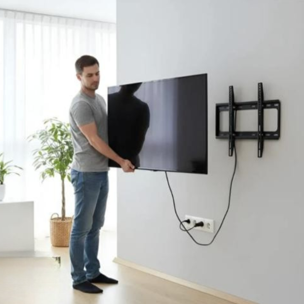 Soporte fijo para TV, ideal para instalar el televisor de forma segura y prolija en la pared. Una opción práctica para ahorrar espacio y dejar el ambiente más ordenado.